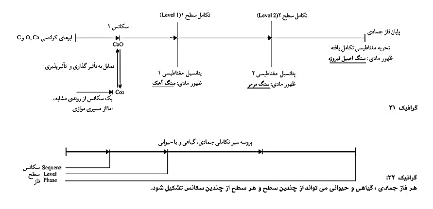 بنابراین، پختگی و تکامل مقطعی، به مفهوم کسب تدریجی انرژی بیشتر (با تعریف ما) می باشد که در انتهای این پروسه به بالاترین حد خود، در این مورد خاص به ایجاد سنگ فیروزه که یکی از سنگ های اصیل می باشد خواهد رسید. از این رو در هنگام اضمحلال سیستم، زمانی که حداقل، کلسیم و کربنات از یکدیگر جدا می شوند، یک عامل دیگر نیز از مجموعه جدا شده است که روح، یا میدان مغناطیسی جمادی سنگ آهک می باشد. از اینرو فرمول و یا نامعادله فوق، مفهوم می یابد. این نامعادله در همه سطوح خلقت که با سیرتکاملی روحی موجوداتِ حداقل سیاره زمین سروکار دارند، معتبر خواهد بود. برای تعیین مقدار انرژی روح در این نامعادله، زمان به عنوان بعد چهارم۲۸ نقش بسیار مهمی را ایفا می کند.