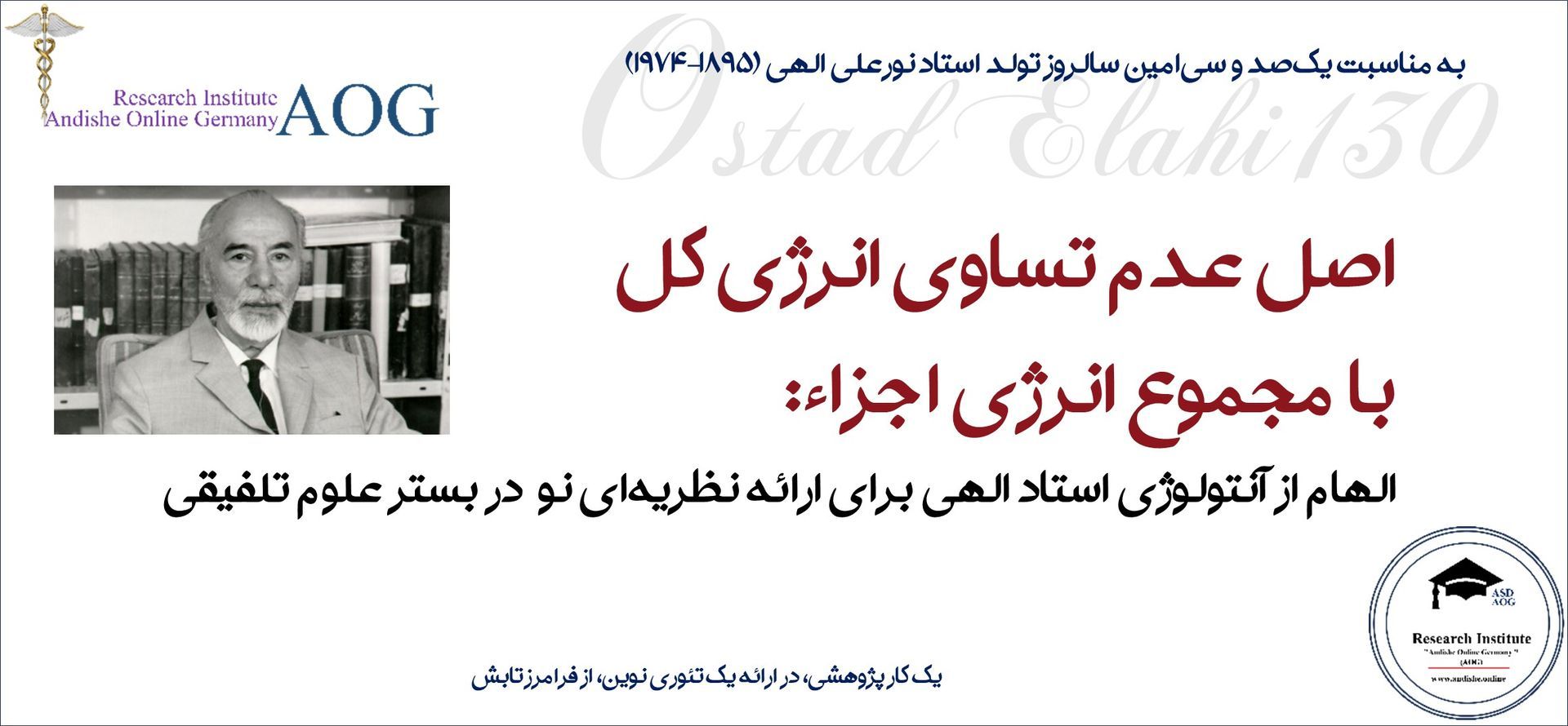 ،به مناسبت یکصد و سیامین سالروز تولد استاد نورعلی الهی (۱۸۹۵–۱۹۷۴)، اندیشمند و متفکر برجسته در حوزه معنویت و آنتولوژی (هستیشناسی)