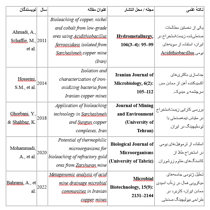 ۱. زیستژئوشیمی و زیستاستخراج (Bioleaching)