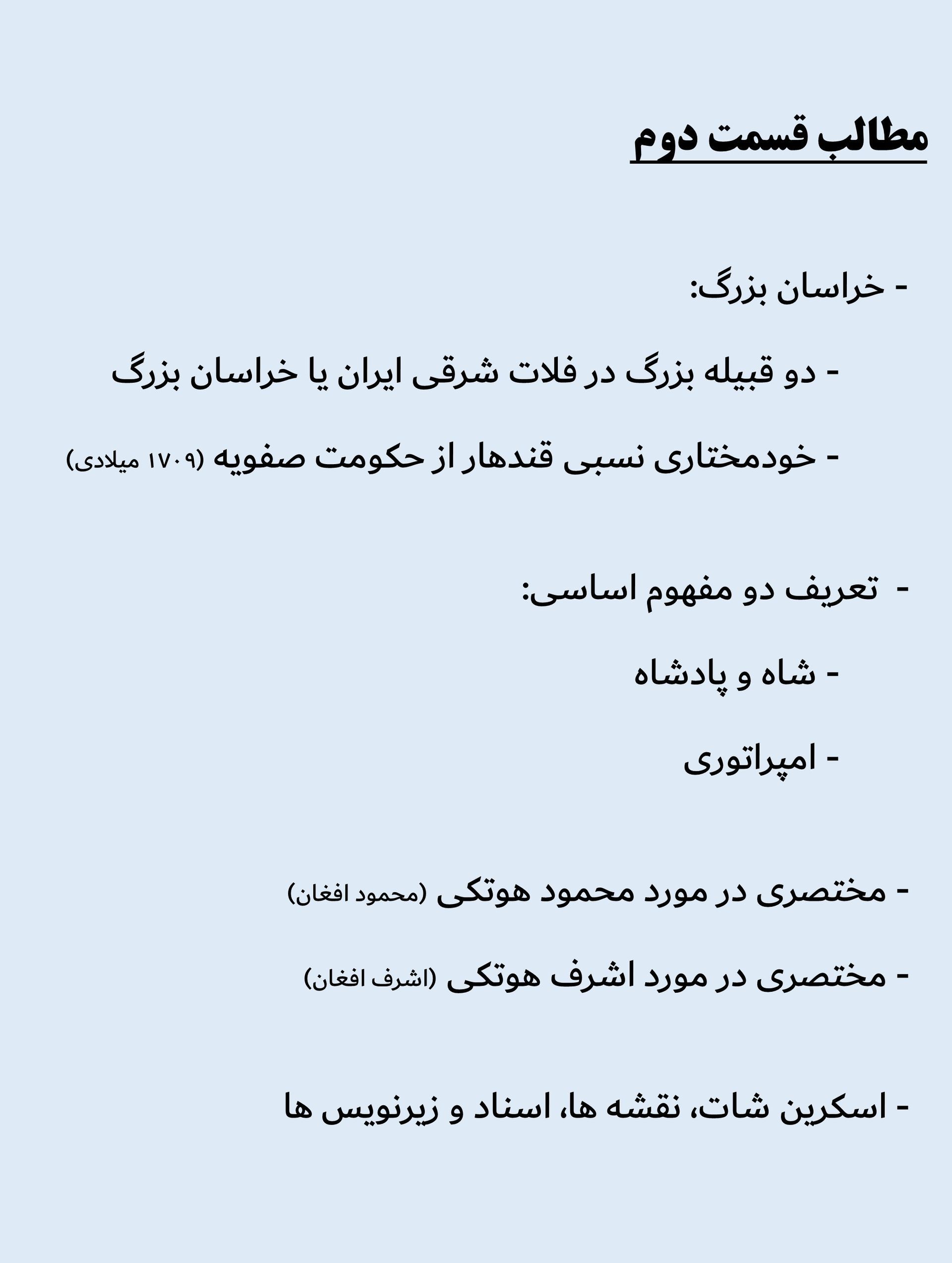 ۲-همه زیرنویس ها و اسناد مربوط به این قسمت (قسمت دوم- خراسان بزرگ تا انتهای "در مورد اشرف افغان")
