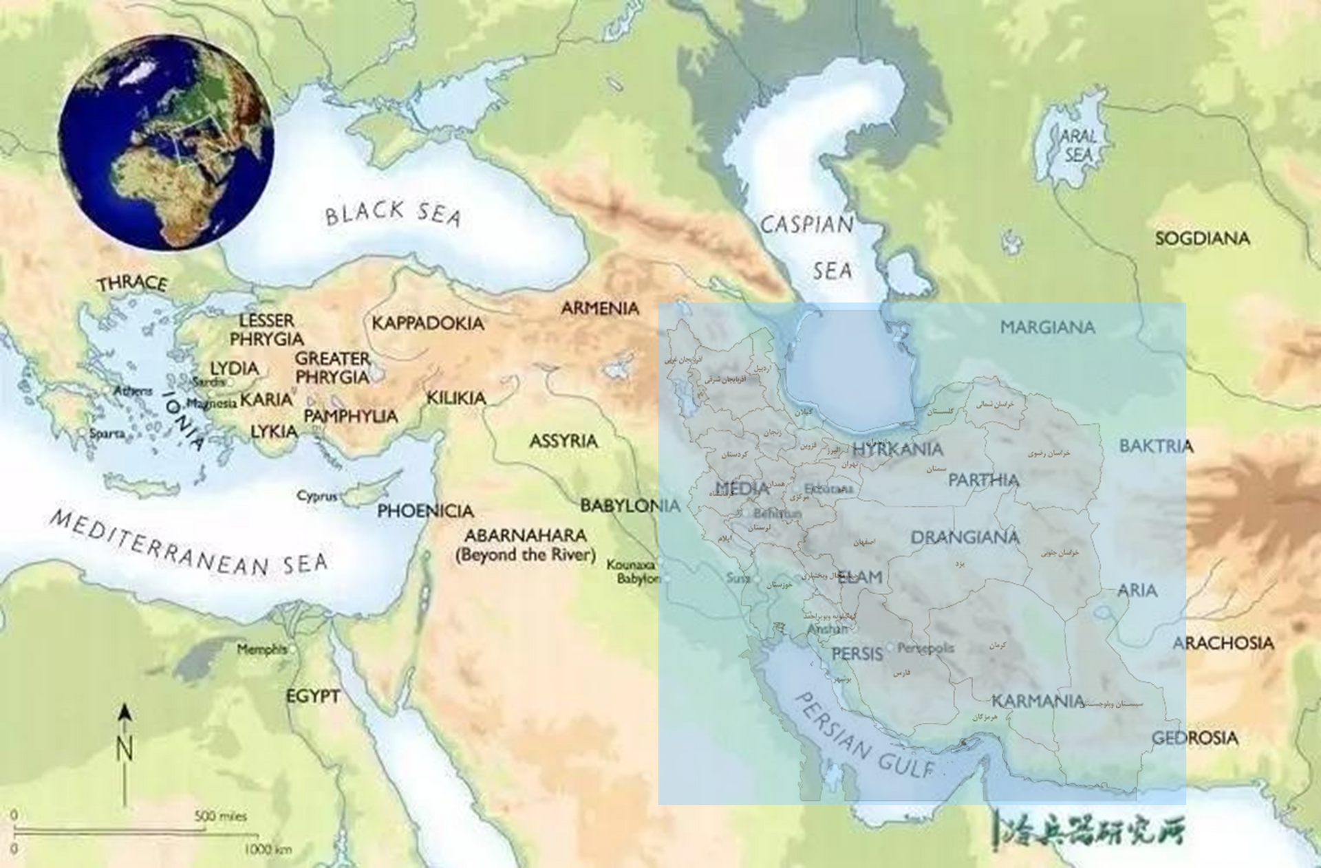 (انطباق ایران کنونی بر روی نقشه امپراتوری هخامنشی از نویسنده این مقاله می باشد) اسکرین شات آریانا ب