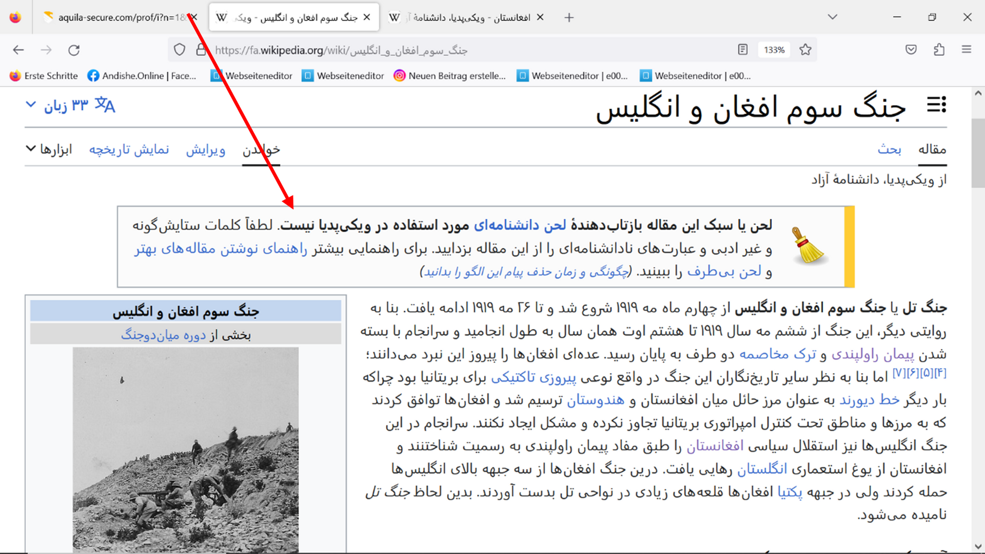 ۳- ورود به ویکی پدیا و وارد کردن جعلیات تاریخی