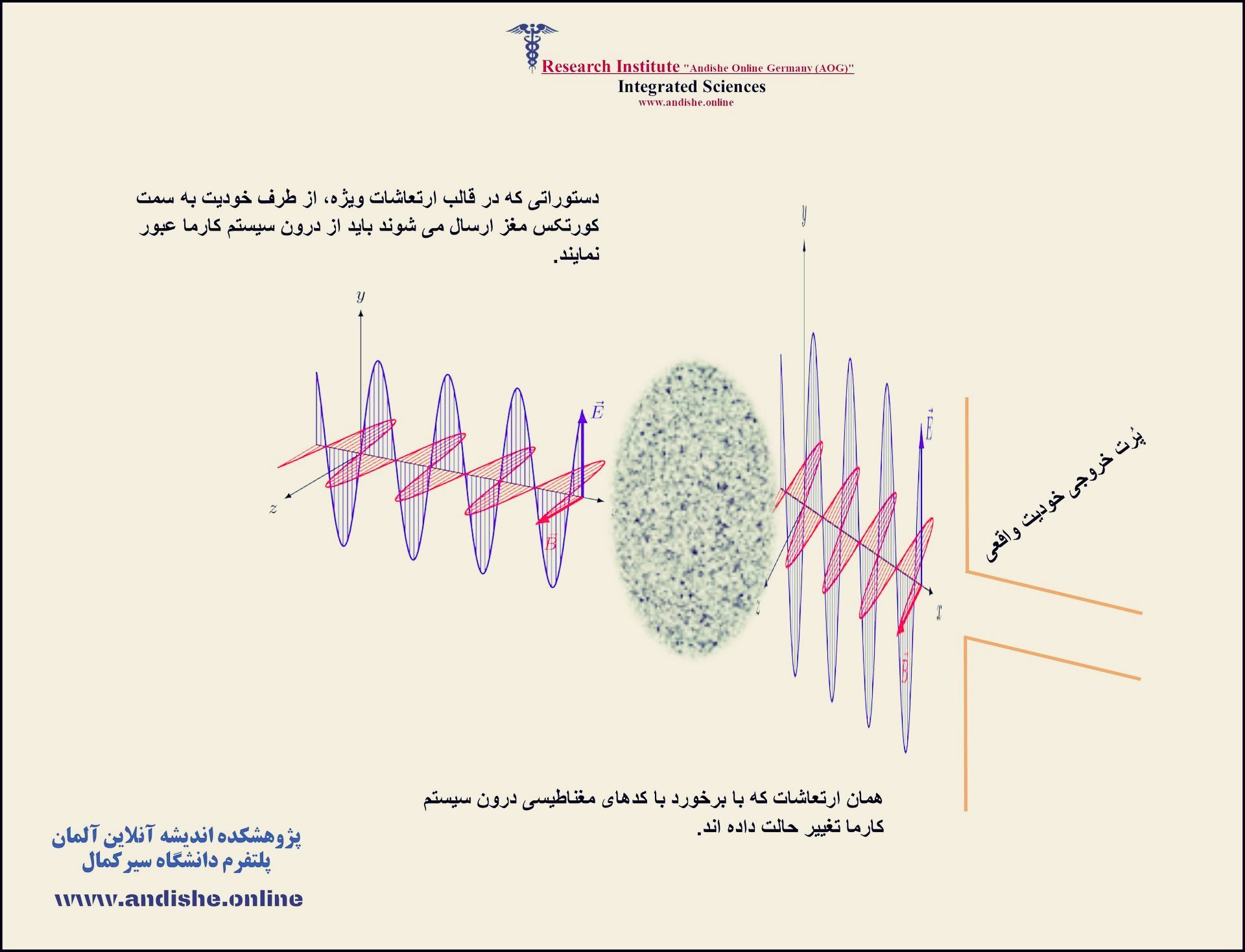 «سیستم کارما» ثبت می شود. این سیستم در درون خودیت حقیقی [سند دوم] هر انسان، درست در پُرت خروجی [سند سوم] که محل اتصال بند کوانتمی اتصال [سند چهارم] با خودیت است، قرار دارد. از اینرو هر دستوری که از طرف خودیت حقیقی به بند اتصال خودیت با کورتکس مغز ارسال می شود، باید لزومن از درون سیستم کارما که یک میدان مغناطیسی بسیار قوی و دارای اطلاعات متفاوت به شکل کدهای مغناطیسی یاد شده می باشد، عبور کند. این میدان مغناطیسی می تواند بر روی دستورات آماده شده توسط خودیت که در واقع نوعی ارتعاش می باشند، تأثیر بگذارد و آنها را بر حسب کدهای خود تغییر دهد.