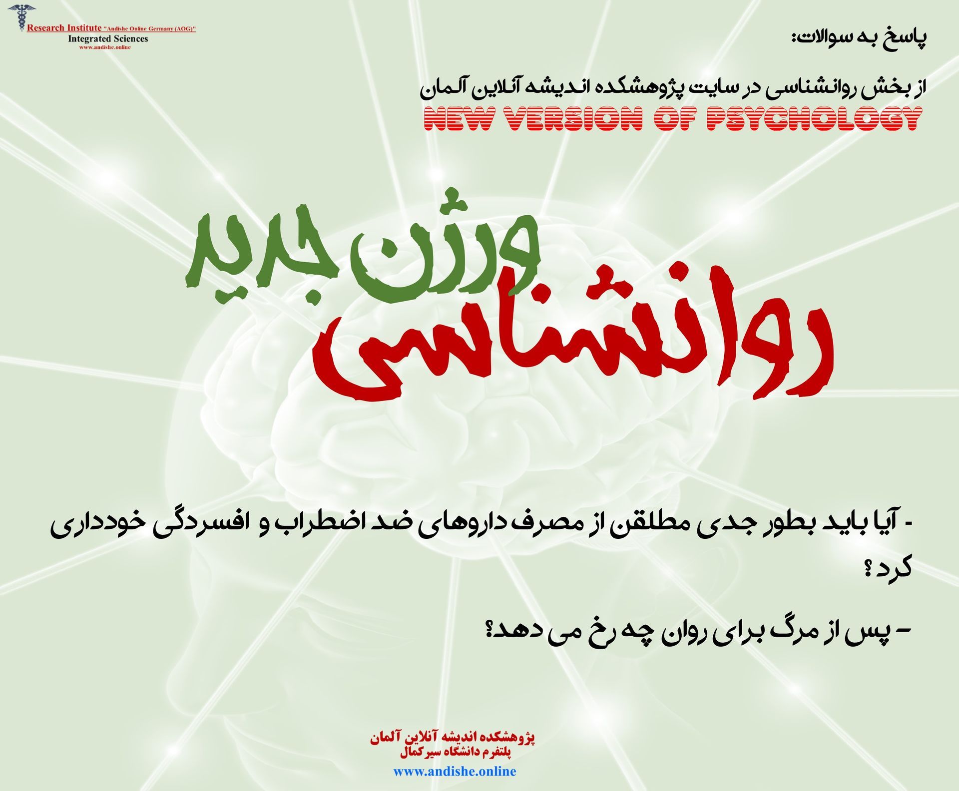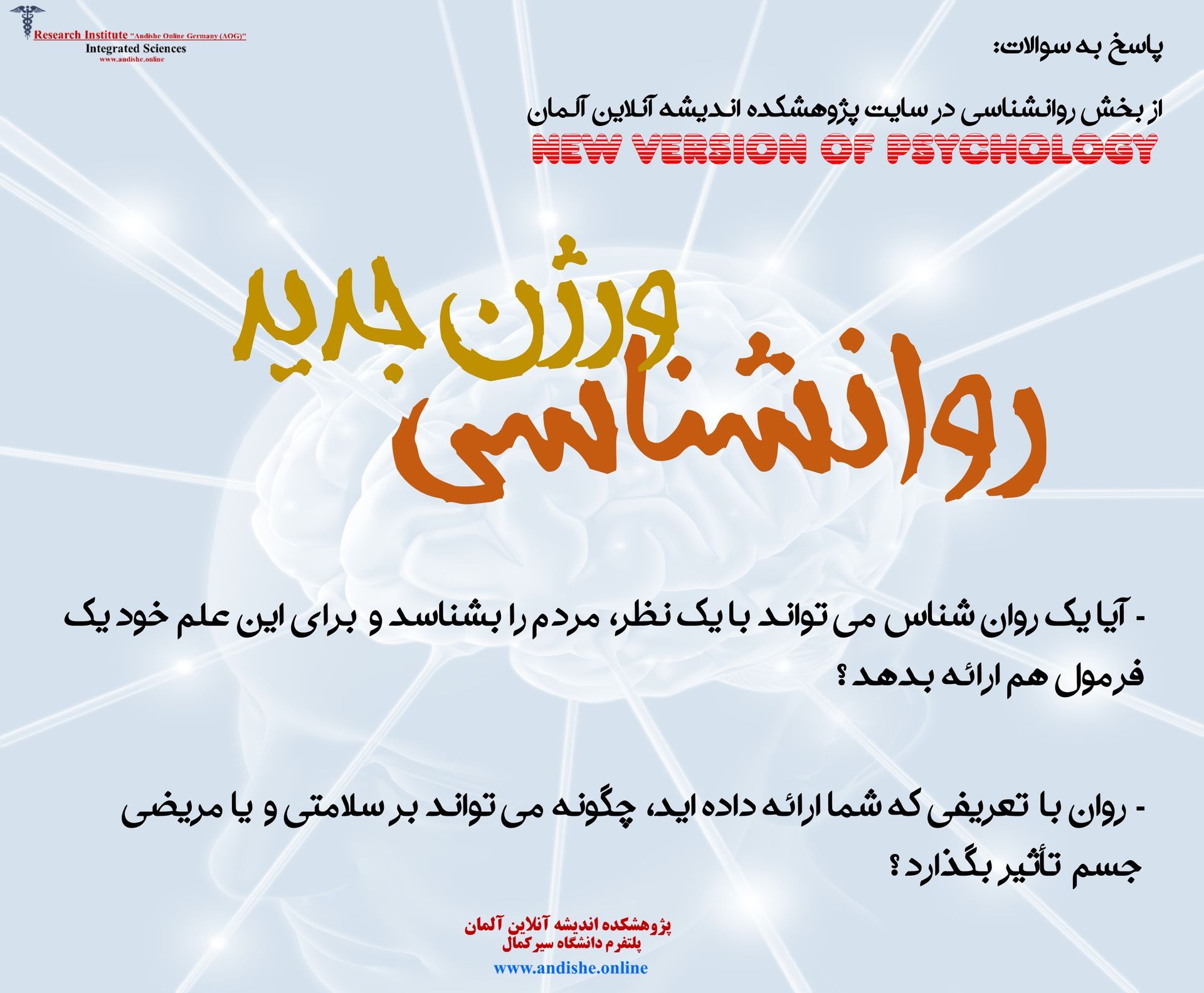 روان پرداخته بودید با پژوهشکده اندیشه آنلاین آلمان آشنا شدم و تازه متوجه شدم در این رابطه نقطه نظرات بسیار بیشتری را به زبان فارسی و دیگر زبانها انتشار داده اید. به عقیده من این نظرات بسیار جالب هستند. اما برای درک بهتر از آنچه در رابطه با روان ارائه داده اید یک سوال اساسی دارم که خدمتتان عرض می کنم.