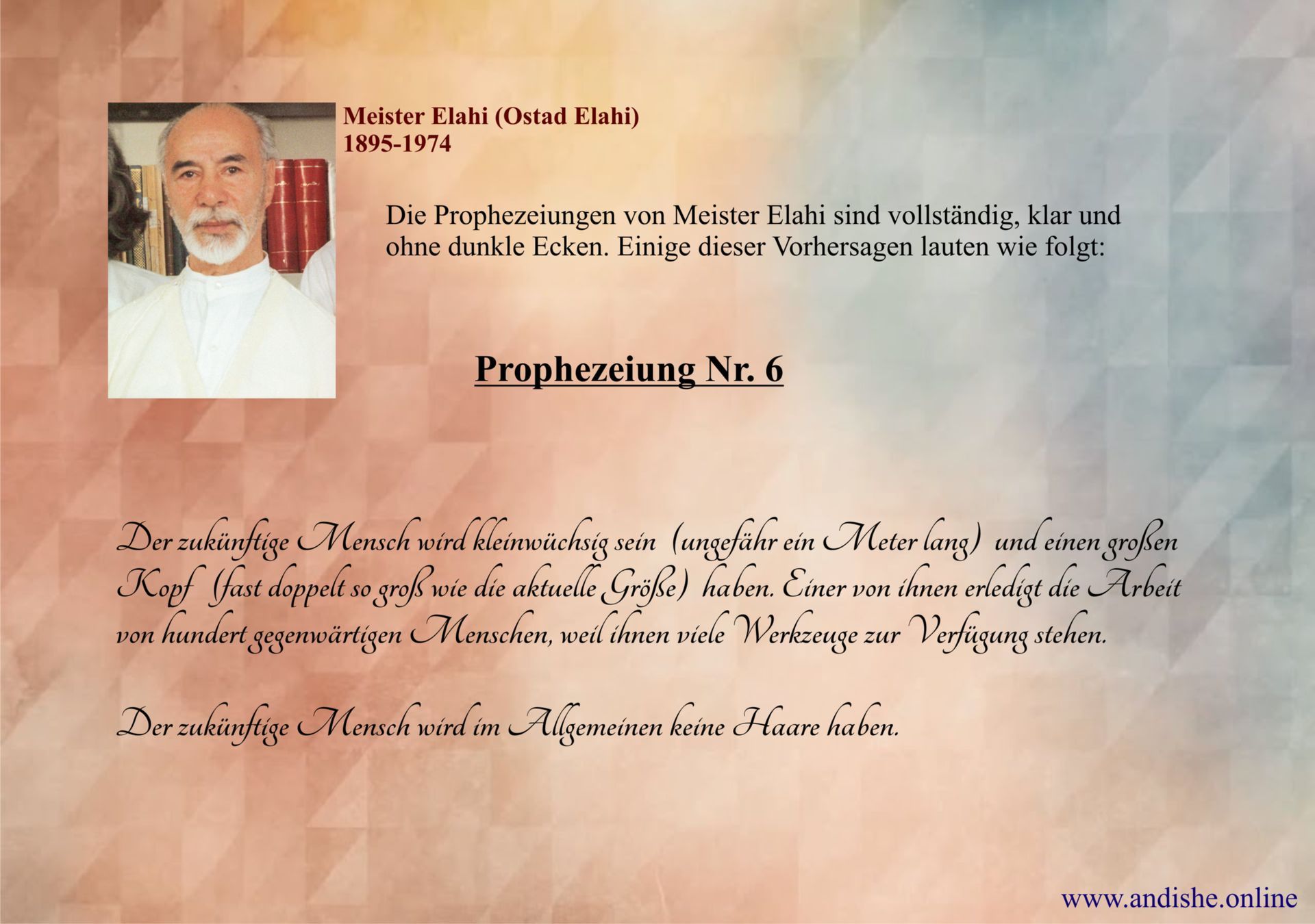 Darüber lassen sich mehrere Bücher schreiben. Dies ist die Aufgabe und die Angelegenheit, die ich der neuen Generation von Studenten von Ostad Elahi überlasse. Meine Aufgabe besteht nun darin, die Rahmenbedingungen und Vorlagen für die vollständige Weltanschauung [Referenz 1] von Meister Elahi zu schaffen, die die letzte Weltanschauung in der gegenwärtigen Zivilisation sein wird.