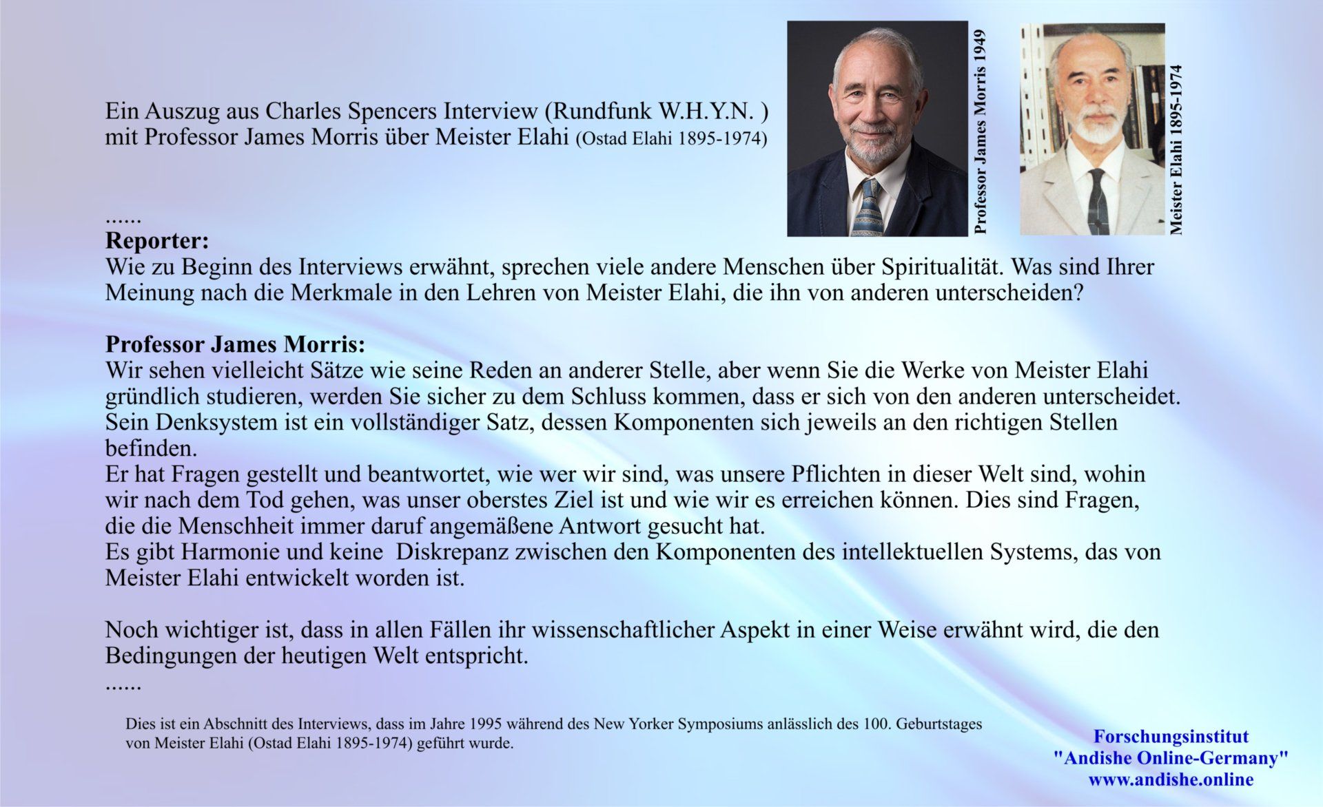 Diesbezüglich sagte Professor James Morris, Professor für Religionsgeschichte am Oberlin College, auf einem Symposium zum 100. Geburtstag von Meister Elahi: