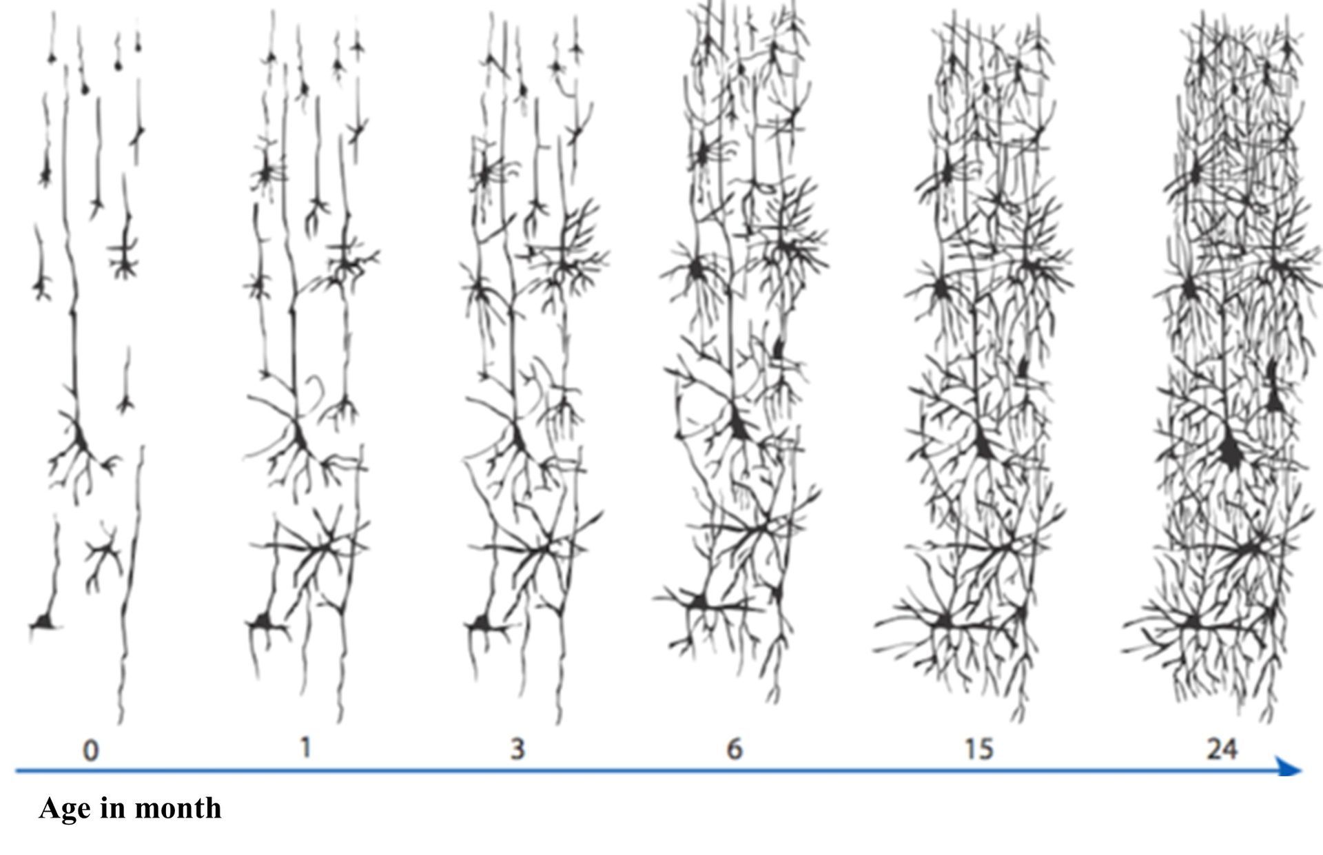 As you can see in the second graph, at least until the age of twenty-four months, the neuron creation phase continues, so it is necessary that especially the large fontanel remains soft until this time and in proportion to the formation of more and more neurons in the cortical lamellae, the fontanelles gradually become firmer and eventually close.