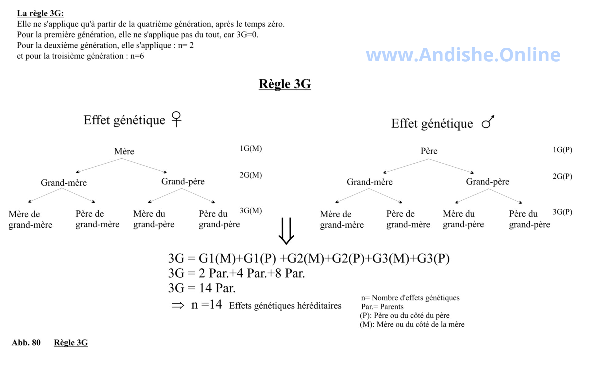 1- Les effets génétiques des trois dernières générations d'un enfant, c'est-à-dire le père et la mère, ainsi que les parents et les grands-parents des deux côtés. Soit un total de 14 personnes. C'est ce que nous appelons la règle des 3 générations, c'est-à-dire la règle 3G.