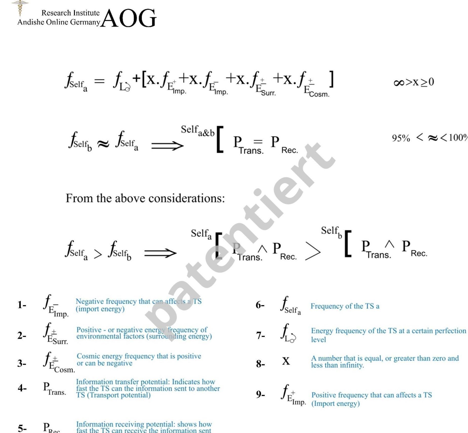 Die hier präsentierte Formel wurde für das Buch „Biologie der Quantendimension“ entwickelt und findet sich in originaler Form in den englischen und persischen Artikeln sowie in diesem wieder. Um die Darstellung nicht unnötig zu komplizieren, wird auf eine schrittweise Erklärung der obigen Formel verzichtet. An dieser Stelle erfolgt stattdessen eine allgemeine und einfache Beschreibung. Diese Vorgehensweise ist dadurch begründet, dass die Formel in jedem Fall indirekt mit dem vorliegenden Artikel in Verbindung steht.
