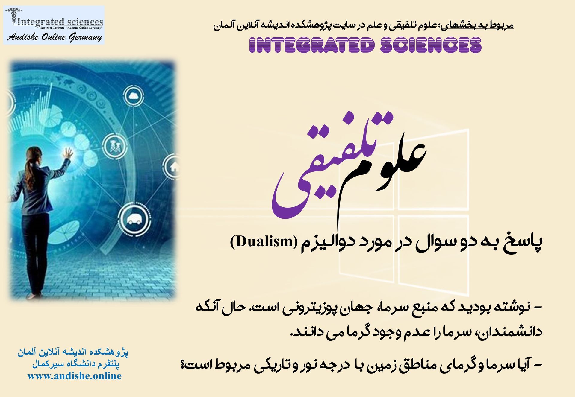 ببینید منظور از ارائه چهار مقاله در مورد مقوله دوالیسم، آن است که دیدگاه علوم آکادمیک را به تدریج تغییر دهیم و به دانشمندان آینده بیاموزیم که به پدیده ها نگاهی یکسویه نداشته باشند و همیشه در محاسبات خود یک منبع اصلی دیگر انرژی یا همان جهان پوزیترونی را نیز در نظر بگیرند. با این مقدمه کوتاه و در جواب قسمت اول سوال شما، باید بگویم که خیر، در سیاره زمین، تاریکی و گرما منشآ فیزیکی دارد و به علت زاویه مایل اگر اشتباه نکنم ۲۳/۵ درجه ای آن است. بنابراین نمی توان نتیجه گرفت که شب و مناطق نزدیک به قطب شمال، پوزیترونی و روز و مناطق مرکزی استوایی سیاره زمین، الکترونی می باشند. چنین طرز تلقی کاملن اشتباه است و این در حالی است که اثرات جهان پوزیترونی و الکترونی در همه جا، از درون هسته اتم های سلول های بدن ما، تا روابط اجتماعی مابین انسانها رسوخ دارد. این دو جهان دائمن در حال کنش و واکنش بر علیه هم می باشند، زیرا حیات یکی در گرو نابودی و یا پس زدن آن دیگری است. برای مثال در هر کجای جهان که فقر، تن فروشی، دروغ، سوء استفاده از دین و اعتقادات مردم، زورگویی و پدیده هایی از این دست حکمفرماست، سریعن می توان نتیجه گرفت که در آن سرزمین، کشور و یا منطقه، نیروهای پوزیترونی توانسته اند موقتن، نیروهای الکترونی را به انزوا بکشانند.