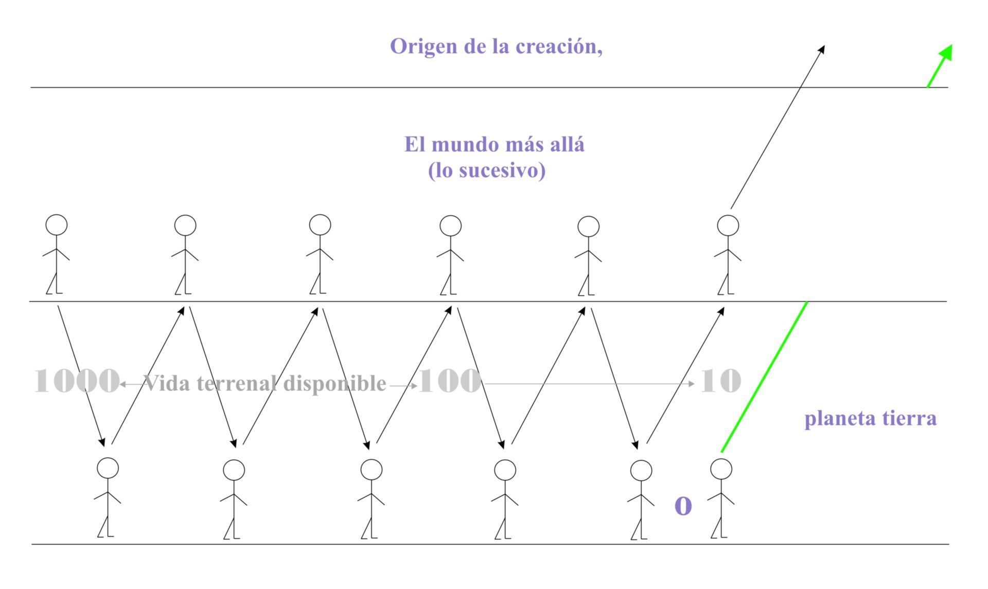 En este contexto, hay que recordar que al principio de la creación, cada alma tiene la oportunidad de alcanzar la perfección espiritual durante cincuenta mil años terrestres. Como la suma de dos vidas terrestres debe ascender a cien años, se deduce que cada alma tiene a su disposición mil vidas terrestres, y como debe pasar por mil etapas espirituales, es fácil ver que, en promedio, para cada vida terrestre, debe completar al menos una etapa espiritual que comprende cuarenta rangos (posiciones) espirituales.