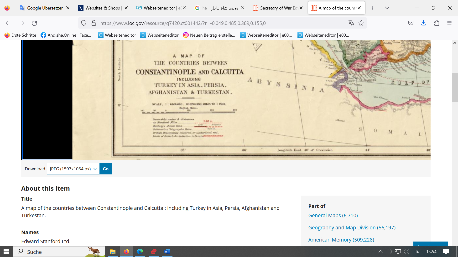 ب- در اسکرین شات در مورد این نقشه از سایت ارائه دهنده آن، نام انتشار دهنده را آقای ادوارد مک مسترز استنتون [Edwin McMasters Stanton] و تاریخ انتشار آن را ۱۹۱۲عنوان نموده است.