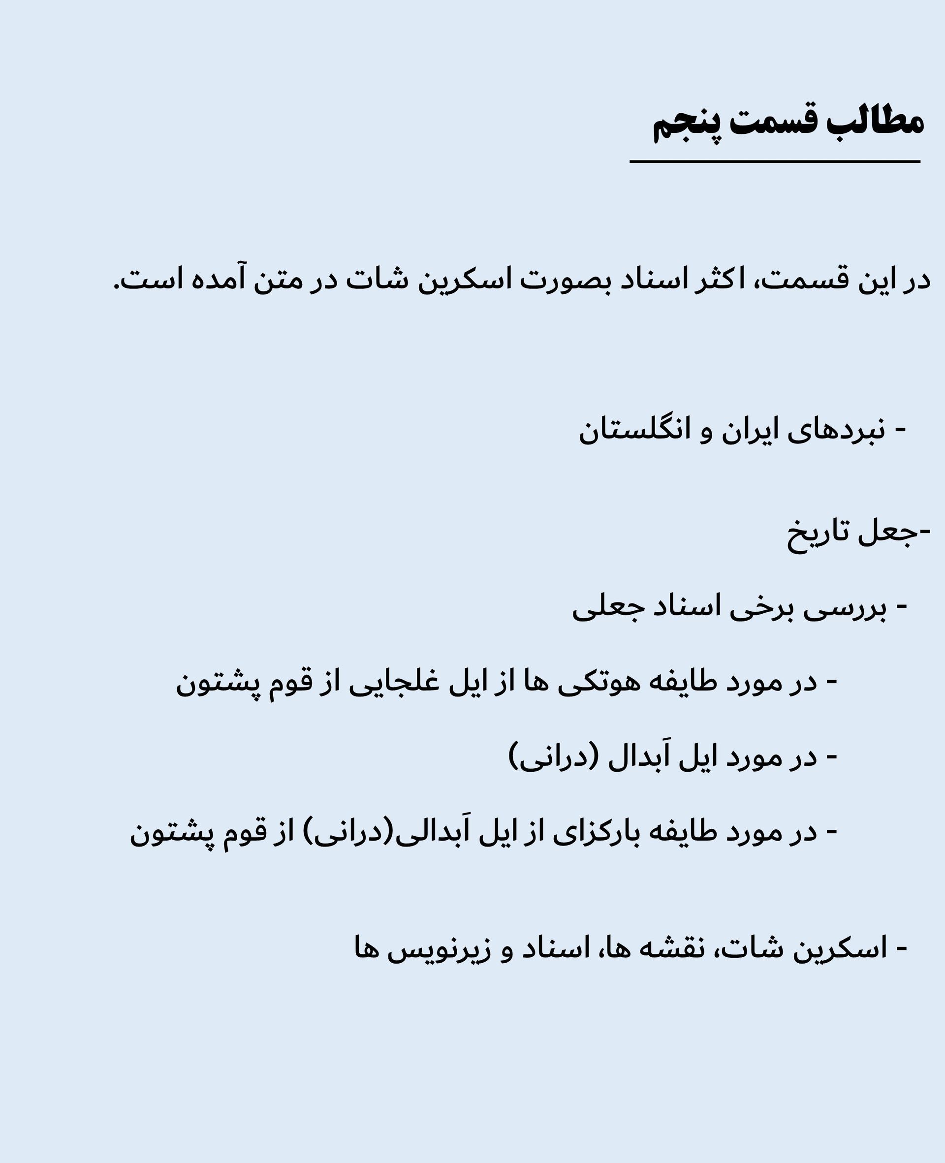 ۵-همه زیرنویس ها و اسناد مربوط به این قسمت (قسمت پنجم- جعل تاریخ تا انتهای " در مورد طایفه بارکزای....")