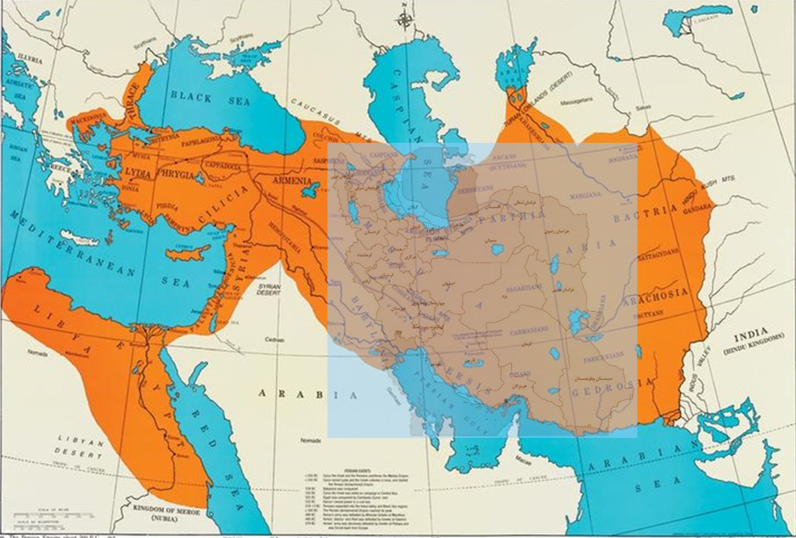 (انطباق ایران کنونی بر روی نقشه امپراتوری هخامنشی از نویسنده این مقاله می باشد) اسکرین شات آریانا ب