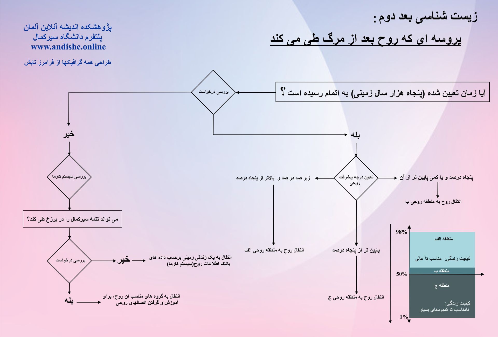 همینطور که در این اَلگوریتم دیده می شود، برخی از ارواح باید بعد از گذراندن مدتی در برزخ، به مرور خود را آماده ورود مجدد به دنیای خاکی به منظور شروع یک زندگی زمینی بنمایند. در این صورت برای وی اتفاقات زیر رخ خواهد داد.