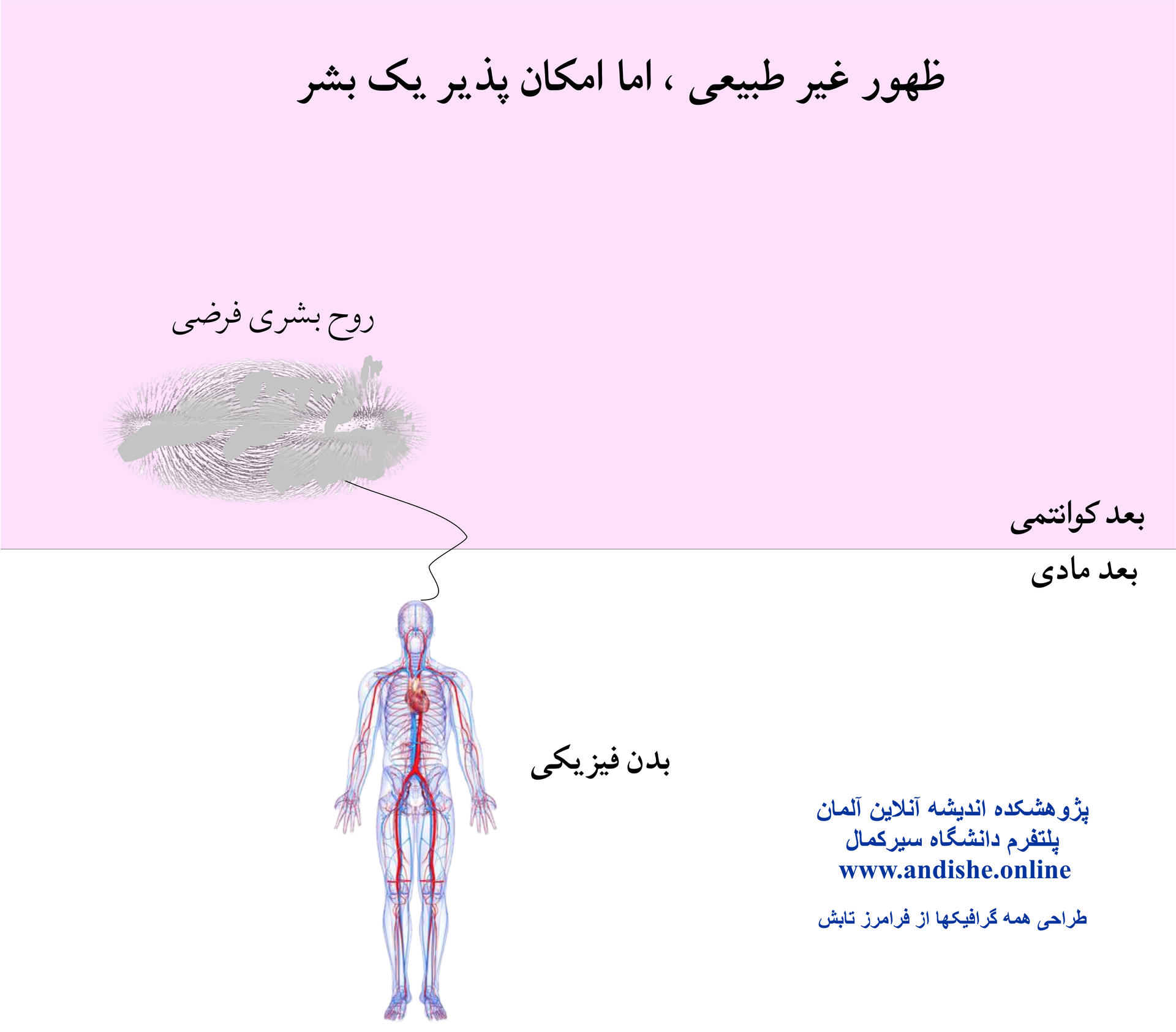 استاد الهی در اختیار ما می گذارند، موجودی که درست بعد از عمل لقاح آنجاست را یک بشر، با تعریفی که فوقن ارائه شد، به حساب می آوریم، زیرا این موجود در بعد کوانتمی خود دارای تنها یک قطب است که یک میدان مغناطیسی پر اطلاعات محسوب می شود و روح بشری نام دارد.